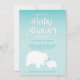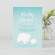 These baby shower invitations feature a mommy and baby polar bear graphic on an icy aqua blue background. Personalize with the information about your event.