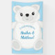 Cute polar bear baby shower cartoon design is great for a winter shower to celebrate a new baby boy on the way with the blue background!