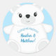 Cute polar bear baby shower cartoon design is great for a winter shower to celebrate a new baby boy on the way with the blue background!