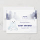 Polar bear, winter wonderland theme design is a lovely blue and white, snow covered forest background with cute bear cub at left. This is a Books For Baby shower card to enclose with invitation. Templates are provided for you on back.