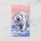 Cute polar bear art business cards feature our original polar bear character from our Animal Parade line standing in a snowy landscape with a pink and purple textured sky painted by our talented children's book illustrator, Traci Van Wagoner. With the polar bear's backside on the side with all your information and the polar bear's front on other side, you're sure to create smiles and bring humor to every interaction. Be remembered, get your very own fun polar bear character set of business cards today. Go wild and buy a complete matching stationery set of Polar Bear fun stuff!