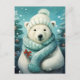 The card features an adorable polar bear wearing a cozy hat and scarf against the backdrop of a picturesque winter landscape. The bear's white scarf is adorned with a charming red bow, adding a touch of festive charm. The title for the card could be "Polar Bear Christmas Elegance with a Festive Bow." You can send this card to close family or friends as a festive greeting, bringing a bit of charm and warmth to their holiday season.