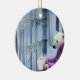 Lightweight, smooth, pure white ornament with nice sheen. Perfect size to be seen from across the room ... and to attract closer inspection! Price was great for ordering enough for the whole family! Clear, bold black design just as requested. Matches the order exactly. Just so nice!