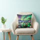 Polar Bear Drinking Water Under Aurora Borealis Throw Pillow