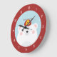 Cute polar bear illustration wall clock design for kids and the young at heart. Personalize the hat with an initial of your own choice. Please note: the initial is partially hidden by the second hand on the view. Design features a happy polar bear wearing a propeller hat. The hat is red and yellow and has the initial P on the front. The polar bear has big rosy cheeks and snow is falling around him. Ideal for a little boy's room or playroom. Design © Lisa Marie Robinson. All Rights Reserved, It is illegal to use or duplicate this, or any of our images, without written permission.