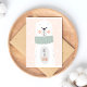 NewParkLane - Cute Christmas Postcard, with polar bear and fun, quote: 'Let it snow' in modern, handwritten typography. With a snowy background in soft orange.
