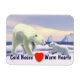 Features a digital painting of a polar bear cub seeking reassurance from its mother on the Arctic ice pack.