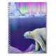 Polar Bear of beautiful land of ice with glowing colorful northern lights