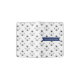Passport holder for kids with a clean minimalist polar bear pattern with in black and white with cute paw prints. Each polar bear has a paw print like a crown above its head. Add your child's name on the dark blue label.