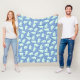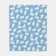 This pretty fleece blanket is winter snuggly, with its pattern of hand drawn light blue polar bears and snowflakes on a sky blue background. Perfect for the winter season, or all year long!