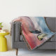 A quality printed throw has its advantages. This is a much finer weave throw than its loopier cousins, and though lighter, it is worth the investment for custom room accessorizing. The back is much prettier than the typical brown, and the fringe on the long sides very vivid, the selvage nicely done. Before photographing, I washed the throw in cold water, delicate, with a thicker woven throw the same size. On tumble dry low, this throw was dry in half the time as the other. This is a very practical quality if you use throws for furniture covers or to wrap up in frequently. The sleekness of the fabric makes it a great layer for accenting or protecting without the feeling of sitting on too much stuff. Perfect for napping or when you feel a light chill coming on. The color printing is beautiful and on this fabric, matched the design and color of my Photoshop image. This is an advantage for blending room fabrics and colors. The fringe on the short sides prints the colors from the design image and therefore varies from the side fringe. I streaked a white fractal line through the plaid pattern to give the illusion of weaving. This printed as crisp as an illusory thread, and put some white in the short side fringe, showing another advantage of print vs loomed- for artistic purposes, line lines, detail, and color integrity can be planned and preserved. My loomed throws have color limitations and more of a needlepoint texture. Print throws reproduce an exact image. The throw felt a little stiff straight out of the package, but this went away in the first delicate wash. Of course I searched the wash water for ink or bleeding and there was none.