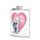 Well made flask, a little better than I had expected. Flask came in clear plastic box which gave it a nice presentation when I took it out of the zazzle packaging. Image is not printed on flask but on sticker. Don't know how this will hold up I haven't used it yet. This would make a Great gift! I plan to purchase more for friends! Cheers. I thought a little brighter than computer. Very crisp, writing wasn't