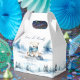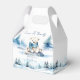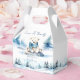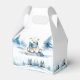 Polar bear arctic winter we can bearly wait baby shower thank you favor box, watercolor cute polar teddy bear wearing a blue scarf sitting on ice rock snowy pines winter themed baby shower thank you favor gift box a cute baby shower table decor item and a gift for your guests