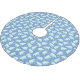 Here's a pretty winter theme Holiday tree skirt that will complement a tree decorated mostly in blue and silver. It features a hand drawn light blue polar bear and snowflake pattern on a sky blue background. Cute!