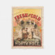 Vintage advertisement of a scene at the North Pole where polar bears are enjoying mugs of lager beer, with a trompe-l'oeil effect showing overheated people, with fans and sunshades, and one man reaching into the scene for a frosty fresh and cold mug of lager beer offered to him by a polar bear.