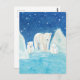 Mom and two baby polar bears in arctic winter. Book illustration.