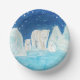 Mom and two baby polar bears in arctic winter. Book illustration.