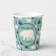 Serve up holiday cooking in style with these personalized Christmas paper cups. These festive plates feature a cool winter themed pattern of hand-drawn style polar bears and dark navy blue evergreen trees against a light teal background. At the center of the cups is your own message and name in fun navy blue lettering.