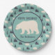 Serve up holiday cooking in style with these personalized Christmas paper plates. These festive plates feature a cool winter themed pattern of hand-drawn style polar bears and dark navy blue evergreen trees against a light teal background. At the center of the plates is a polar bear illustration and your own message and name in fun navy blue lettering.