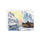 A beautiful and colorful engraving, circa 1860, of Polar Bears, Walrus, and seals on Arctic ice, with the sun low on the horizon in the background.