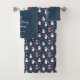 This whimsical Christmas towel set features an optional deep blue background topped with red and white polar bears and script text design of ' A Beary Merry Christmas.' Large bath towel has a coordinating pattern of adorable polar bears. Add your name using the provided template. Search ID851 to see all the coordinating products for this mix n' match design set.
