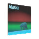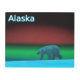 A polar bear roams the ice during the long polar night; the Northern Lights in red and green glow in the distance. Text reading "Alaska" appears in glowing blue and white. Feel free to ask me if you need assistance with other sizes. Click on "Ask this Designer" in the upper right-hand corner.