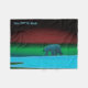 A polar bear roams the ice during the long polar night; the Northern Lights in red and green glow in the distance. Add your own text.