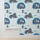 A wallpaper with a cute cartoon pattern with friendly penguins and seals. There' a little blue penguin with his fishing pole and a gentoo penguin eating an ice cream while having a great time with his seal friends. I think this is a wonderful motive for a little boy's room Check out my "Polar Pals" store to see this and similar designs on other products!