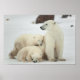 Polar she-bear with cubs. The polar she-bear with two kids on snow-covered coast.