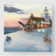 From an original acrylic painting by Brenda Thour of Sherwood Lighthouse in Wisconsin, during a beautiful sunset on a snow covered winters' day and two people snowmobiling. Copyright by Brenda Thour 2004.