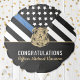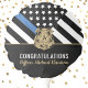 This design features a police force flag with black and white stripes, and a thin blue line stripe as well. A great way to say congratulations to the new police academy graduate. Customize with the name of the graduating law enforcement officer in gold. Celebrate this milestone in style!