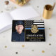 This design features a police force flag with black and white stripes, and a thin blue line stripe as well. Customize with the name of the retiring or graduating law enforcement officer, sheriff, captain, or chief. A great way to say congratulations to the new retiree or graduate for their retirement or graduation from police academy. Customize even further with a photo of the retiring police officer.