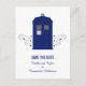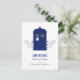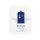 Quirky and fun Police Box Save the Date Postcard featuring a brilliant blue vintage police box flanked by swirl flourishes and blue stars. Easy to customize, simply add your wedding details in the text fields provided. Click "Customize It" to find more personalization options.