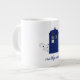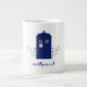 Quirky and fun Police Box Swirls Jumbo Mug featuring a brilliant blue vintage British police box flanked by cascades of swirl flourishes and blue stars. Easy to customize, simply add your name or other personalized text. Click "Customize It" to find more personalization options.