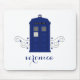 Quirky and fun Police Box Swirls Mousepad featuring a brilliant blue vintage British police box flanked by cascades of swirl flourishes and blue stars. Easy to customize, simply add your name or other personalized text. Click "Customize It" to find more personalization options.