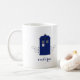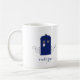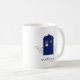 Quirky and fun Police Box Swirls Mug featuring a brilliant blue vintage British police box flanked by cascades of swirl flourishes and blue stars. Easy to customize, simply add your name or other personalized text. Click "Customize It" to find more personalization options.