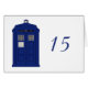 Quirky and fun Police Box Wedding Table Number Card featuring a brilliant blue vintage police box. Easy to customize, simply add the text of your choosing in the text fields provided. Click "Customize It" to find more personalization options.