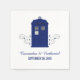 Quirky and fun Police Box Wedding Paper Napkins featuring a brilliant blue vintage police box flanked by swirl flourishes and blue stars. Easy to customize, simply add your wedding details in the text fields provided. Click "Customize It" to find more personalization options.