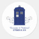 Quirky and fun Police Box Wedding Stickers featuring a brilliant blue vintage police box flanked by swirl flourishes and blue stars. Easy to customize, simply add the text of your choosing in the text fields provided. Click "Customize It" to find more personalization options.