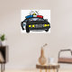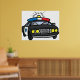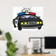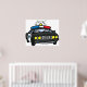 decorate a bedroom or playroom with this bold cartoon illustration of a classic police car. this high quality emergency vehicle poster adds a touch of law enforcement action to any kids nursery or playroom wall. featuring a bright cop cruiser with flashing siren lights, this justice graphic is a must have for any young patrol wagon fan looking to create a fun and heroic atmosphere.