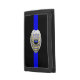 Police Chaplain Badge wallet. Celebrate the honor of the men and women who protect and serve with this gorgeous Thin Blue Line badge design. Any law enforcement officer would be proud to own one.
