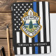 Thin Blue Line Police Department iPad Cover - American flag in Police Flag colors, modern black and blue design . Customize with your department logo, and personalize with police officers name. This personalized law enforcement iPad Cover is perfect for police departments and law enforcement . COPYRIGHT © 2020 Judy Burrows, Black Dog Art - All Rights Reserved. Police Department Custom Logo Law Enforcement iPad Air Cover