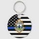 Thin Blue Line Police Department Keychain - American flag in Police Flag colors, modern black and blue design . Customize with your department logo, and personalize with police officers name. This personalized law enforcement keychain is perfect for police departments and law enforcement officers, promotional ideas, or gifts to your police officers. COPYRIGHT © 2020 Judy Burrows, Black Dog Art - All Rights Reserved. Police Department Custom Logo Law Enforcement keychain