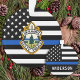Thin Blue Line Police Department Christmas Ornament - American flag in Police Flag colors, modern black and blue design . Customize with your department logo, and personalize with police officers name. This personalized law enforcement ornament is perfect for police departments and law enforcement officers, stocking stuffers and christmas gifts to your police officers. Order these police ornaments bulk wholesale for the police academy or police department gifts, police christmas stocking stuffers. COPYRIGHT © 2020 Judy Burrows, Black Dog Art - All Rights Reserved. Police Department Custom Logo Name Law Enforcement Ornament