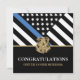 This design features a police force flag with black and white stripes, and a thin blue line stripe as well. A great way to say congratulations to the new police academy graduate. Customize with the name of the graduating law enforcement officer in gold. Celebrate this milestone in style!