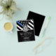 Honor the dedication and hard work of a new law enforcement officer with this customizable police graduation invitation. Featuring a [police badge and the police force flag with bold black and white stripes and a proud thin blue line, this design symbolizes strength, service, and sacrifice. The invitation is personalized with the graduate’s name and party details, making it a memorable keepsake for friends, family, and fellow officers. Perfect for celebrating a police academy graduation, promotion, or milestone in a future officer’s career. Invite your guests in style and show support for the newest member of the thin blue line community.