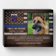 Honor your best partner and police dog for his dedicated years of service with this Thin Blue Line Police Dog Retirement Appreciation Photo award plaque. Personalize with your police K9 officer's photo, name, personal message, service dates and service years. Also personalize with badge, department logo or seal. Perfect for police K9 handler gifts or police departments to honor a retiring police dog. COPYRIGHT © 2020 Judy Burrows, Black Dog Art - All Rights Reserved. Police K9 Dog Law Enforcement Officer Retirement Wooden Box Sign