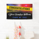 Law enforcement party banner for a police graduation, birthday party or retirement event. This cop themed banner features red and blue flashing police car lights, yellow crime tape, and a text template that is easy to personalize.