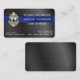 Police Business Cards - Police Department custom logo, thin blue line in a metallic silver black and blue design.