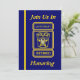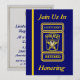 This blue and gold invitation is decorated on the front with a Police Lieutenant's custom badge logo. You can customize this card by placing your information into the boxes provided. You can also customize the badge on the front and back with the honoree's name.